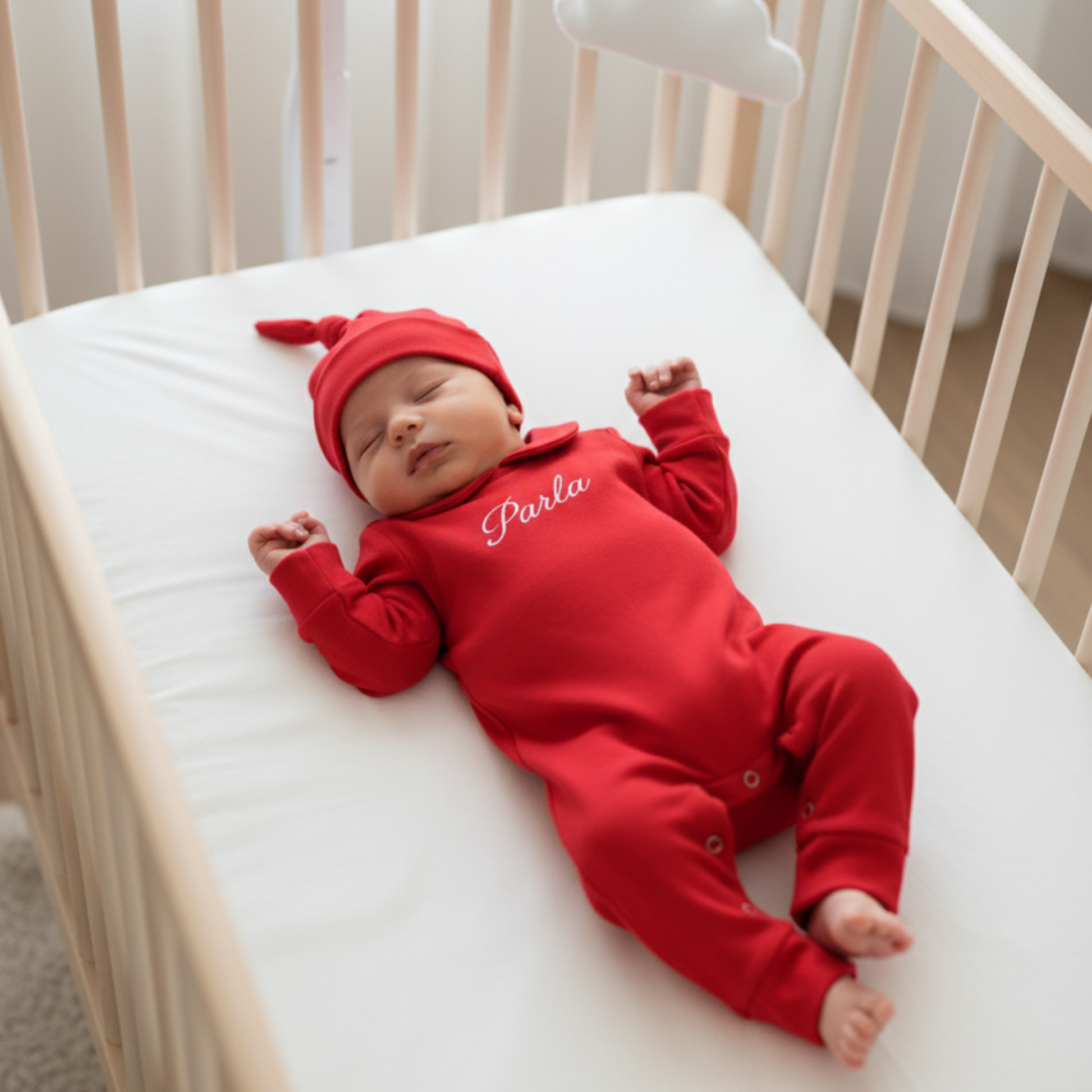 Kırmızı Yenidoğan Unisex Hastane Çıkış Seti